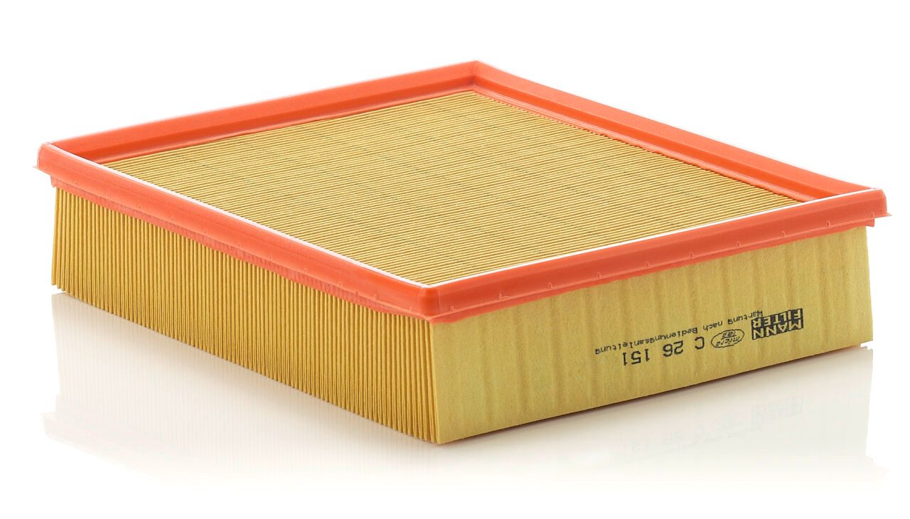 High-quality MANN-FILTER air filters for clean air intake and optimum protection for your engine, mass air flow sensor & other sensitive components / They meet requirements of modern engine technology. Highest dirt holding capacity and dirt separation efficiency, low flow resistance and high pleat stability ensure functional reliability during the entire service interval.