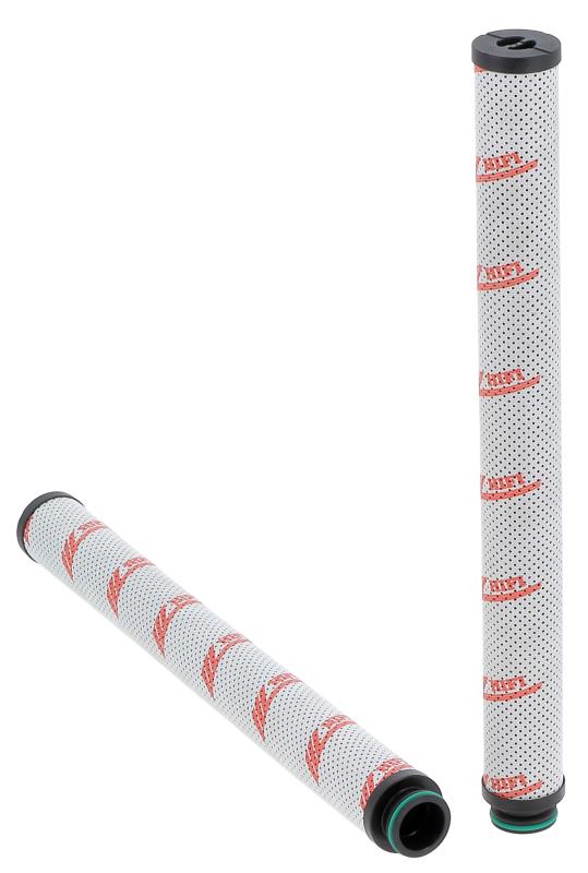 The efficiency of the element is shown using the Micron (µ) and Beta (β) ratings. The micron rating indicates the size of the particle being filtered and the beta rating the efficiency, calculated as 1/β.